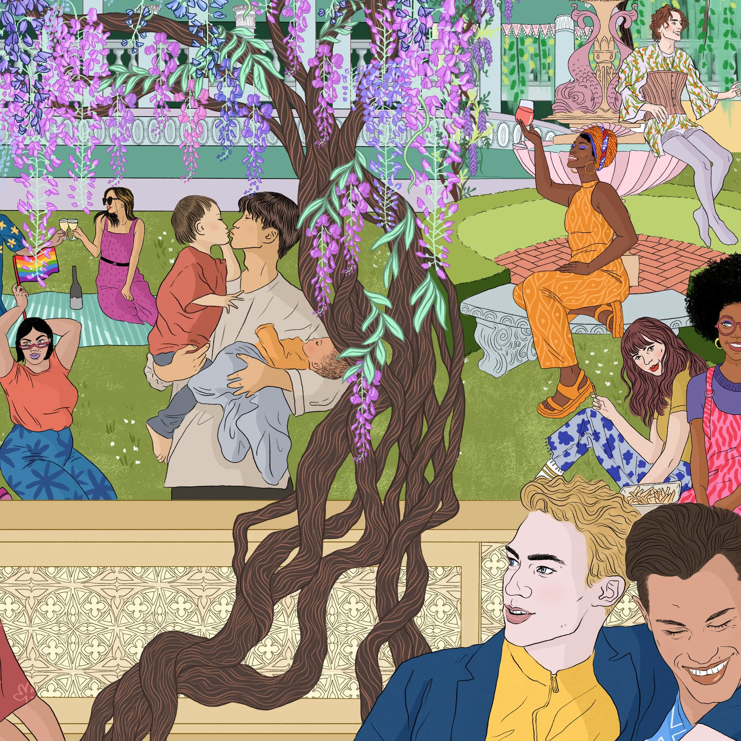 The brief was ‘Love Different’ - I wanted to pay homage to Vauxhall’s infamous history which has had a large impact and influence on today’s creative and diverse communities. The focus of my piece was the Vauxhall pleasure gardens, which were held in the park near the arches and defined Londons nightlife in the 18th and 19th centuries. They had strong links with the LGBT and creative communities which is still prominent today, I wanted to represent this in my piece.